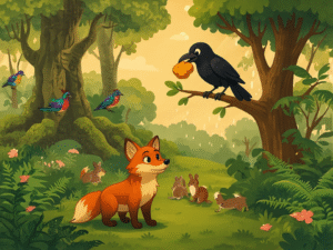 एक लोमड़ी और एक कौआ – बच्चों के लिए शिक्षाप्रद कहानी 🦊🐦