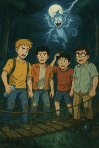 चारों दोस्त अब पुल के दूसरी ओर थे, लेकिन सबके चेहरे पर डर, थकान और राहत की अजीब सी मिली-जुली झलक थी। पसीने से तरबतर, दिल अब भी तेज़ी से धड़क रहे थे।